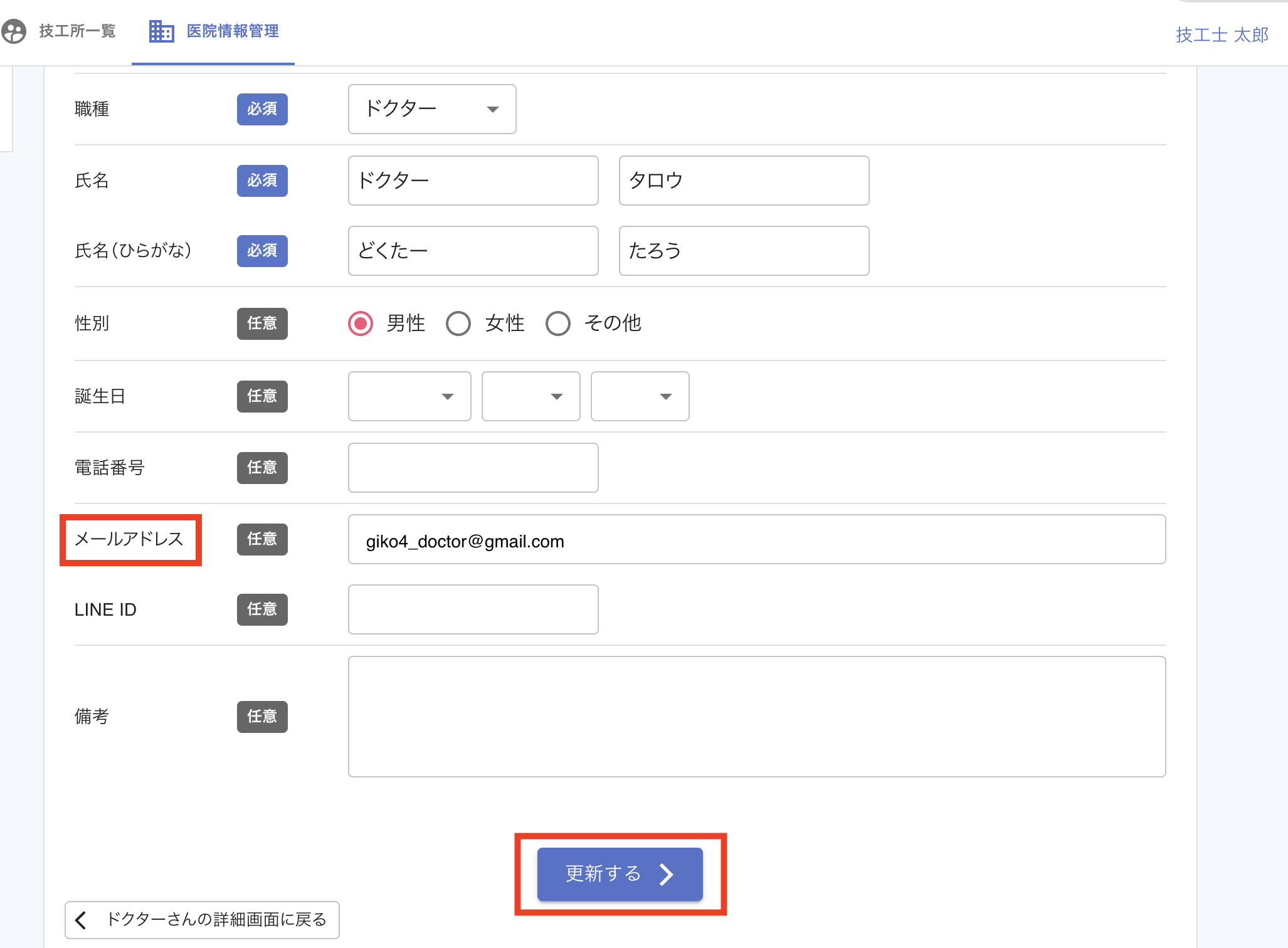 STEP4. [メールアドレス]欄に新しく登録・変更したいメールアドレスを入力し、「更新する」をクリックします。