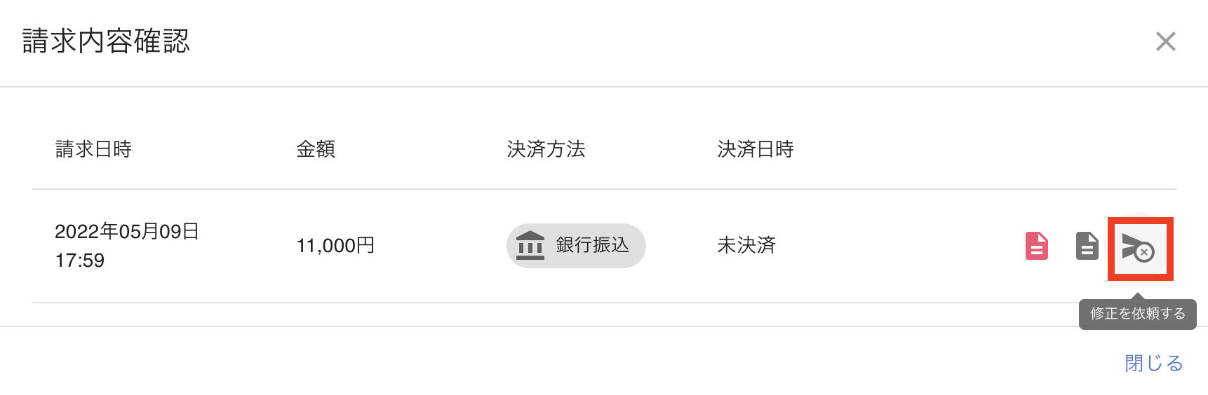 STEP3. [請求内容確認]の「修正を依頼する」アイコンをクリックします。