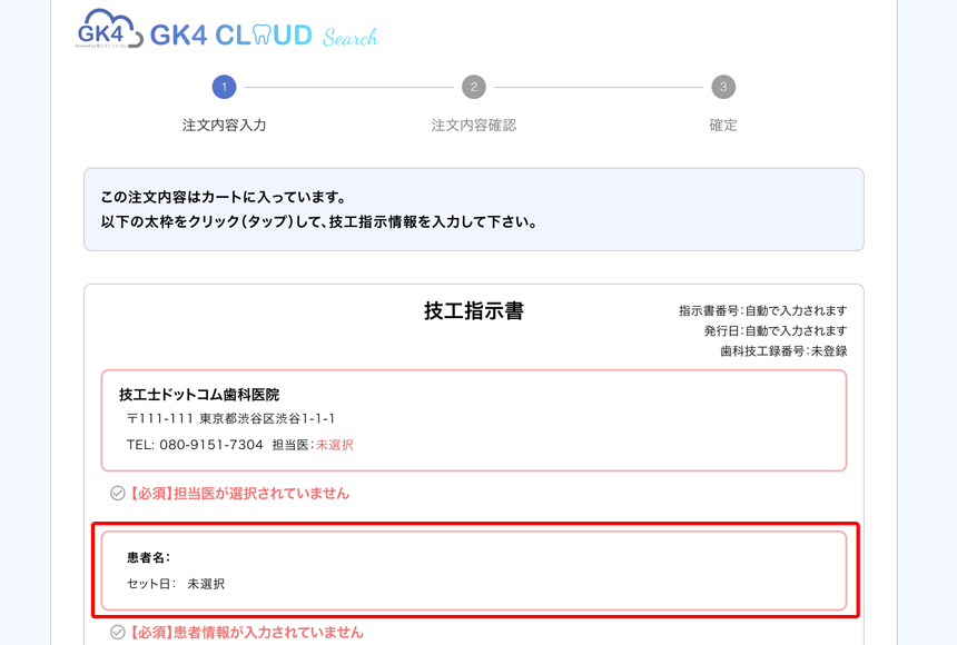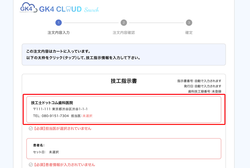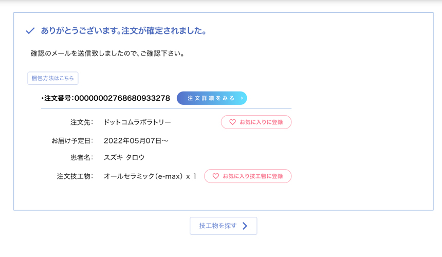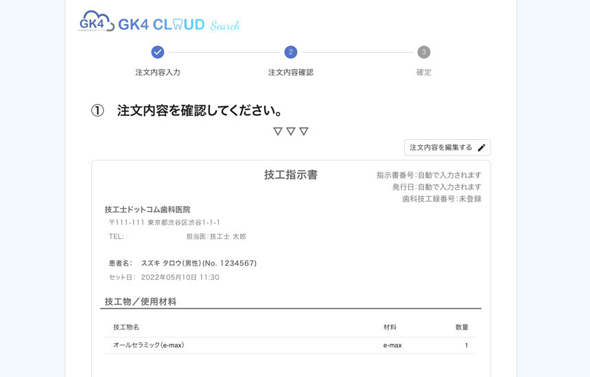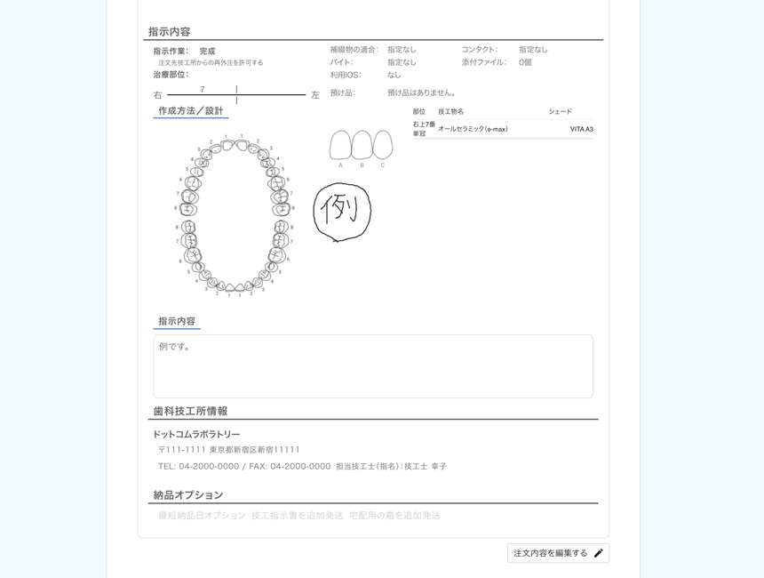 このページでは、補綴物の指示書の入力から発注完了までの流れをを解説します。