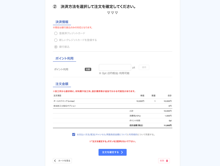 ※「注文を確定する」ボタンを2度押さないようにご注意ください。