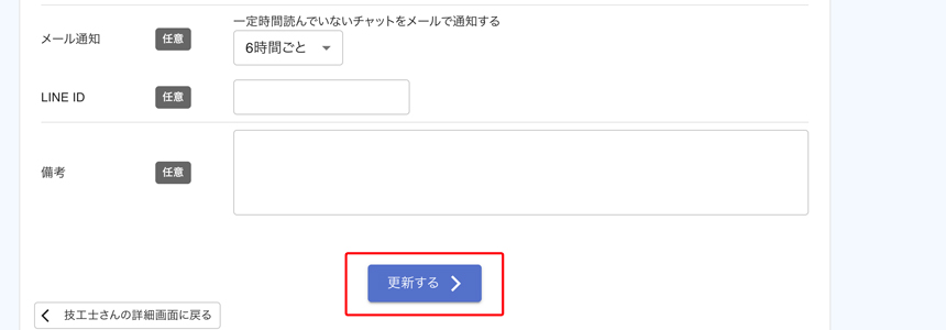 スタッフ情報の入力が完了したら、一番下にある「更新する」をクリックしてください。