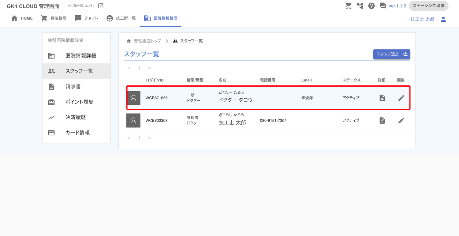 これで、スタッフの登録が完了しました。