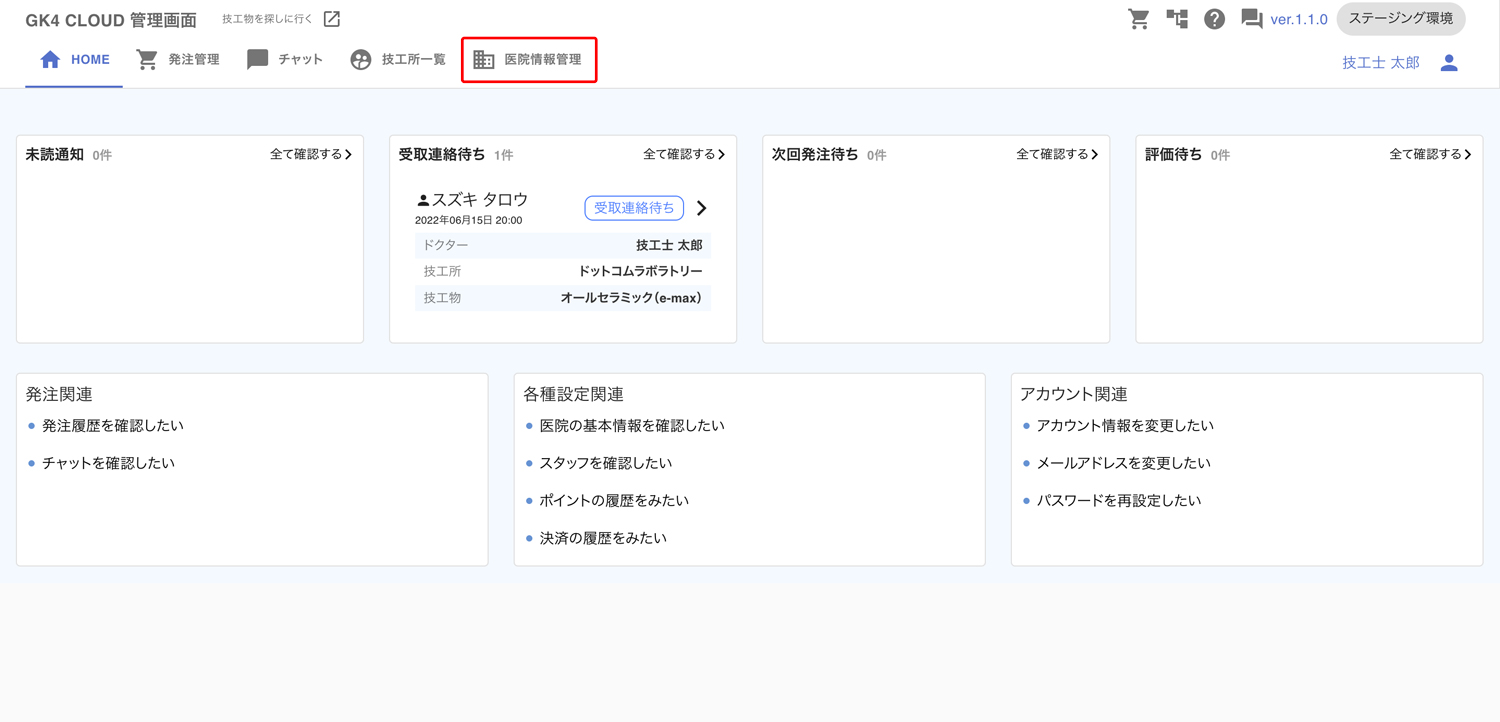 管理画面から、医院情報管理をクリックします。